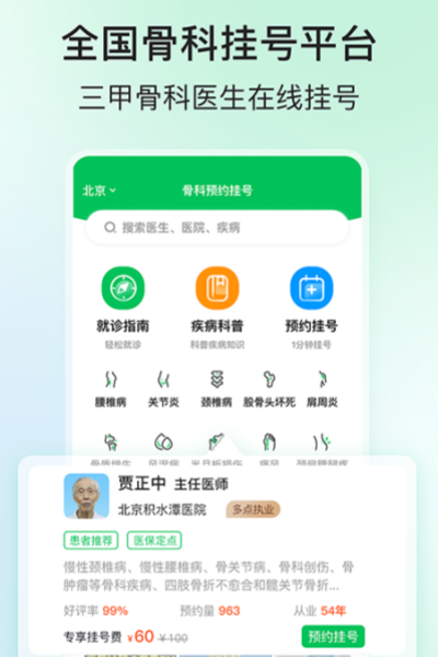 1.覆盖北京骨科知名专家号源;