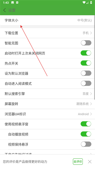 3、在设置页面中,找到字体大小选项,点击该选项弹出字体大小的选择菜单。