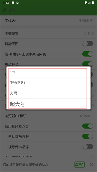 运行速度超快的手机浏览器,提供了海量的影视及图库资源,支持下载功能,还可以在线免费看小说,界面可进行自定义设置,0.1秒极速动,占手机内存十分小,功能依然很强大,及时收录影视、音乐、小说、游戏等分类的网址和内容,让您的网络生活更简单精彩。可下载优质图片,提供夜间护眼模式。