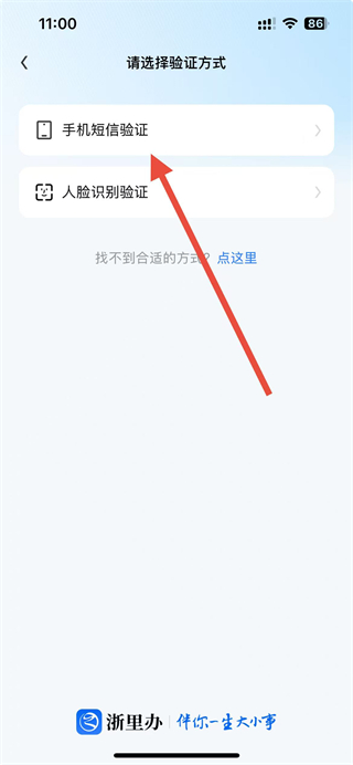 3、在验证方式选择页面,根据个人选择验证方式,例如选择手机短信验证。