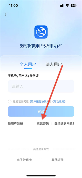 2、在登录页面,点击忘记密码选项,进入验证方式选择页面。