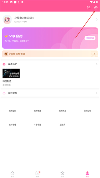 2、进入我的界面内,点击右上方齿轮状的按钮。