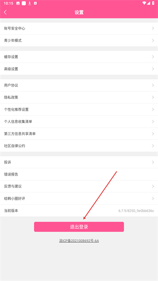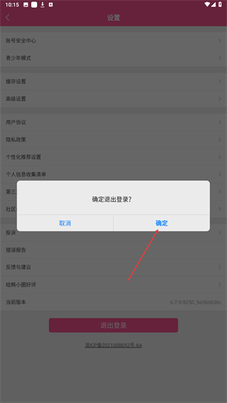 3、在设置页面的底部区域,找到并点击退出登录按钮,弹出确认提示框。