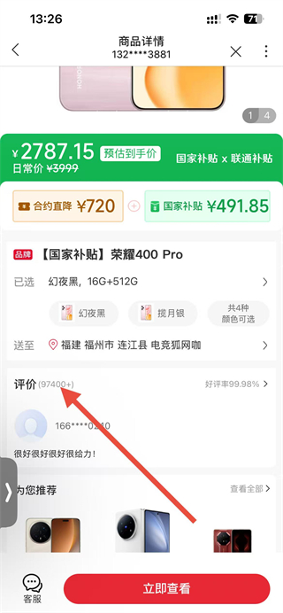 3、在商品详情页面,找到评价区域,点击对应的评价入口,进入商品评价的查看界面。