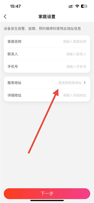 4、在家庭设置页面,依次填写家庭信息,点击下一步完成家庭创建。