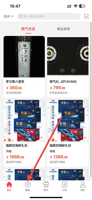 1、进入e城e家app,点击底部智家选项,进入智家页面。
