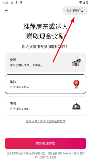 3、在推荐页面的右上角,找到你的受邀好友按钮并点击,即可查看对应的受邀记录。