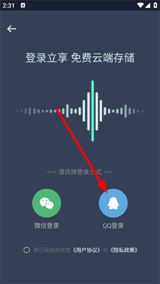 3、在登录方式选择页面,选择并点击qq登录选项。