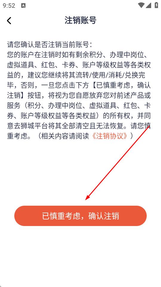5、点击已慎重考虑,确认注销,即可完成账号注销操作。