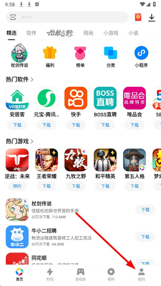 1、打开应用宝,点击底部导航栏我的选项,即可进入个人页面。