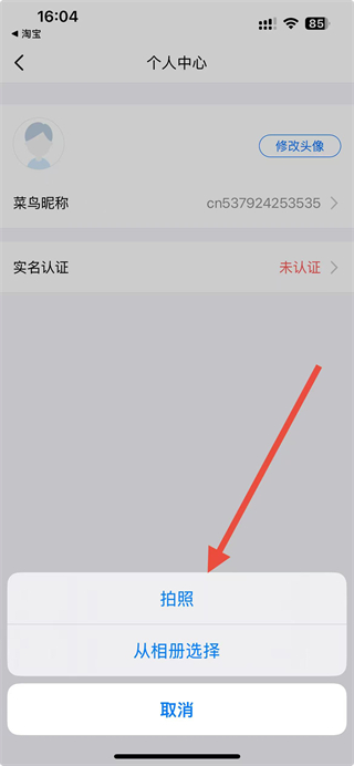 4、在弹出的选项中,选择拍照或从相册选择,完成新头像的选取与设置。