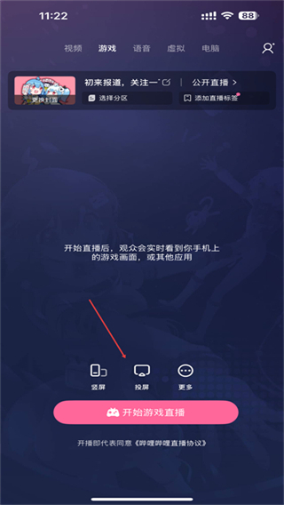 一键开播功能,登录后可直接推流至哔哩哔哩直播间,只需手指轻轻一点