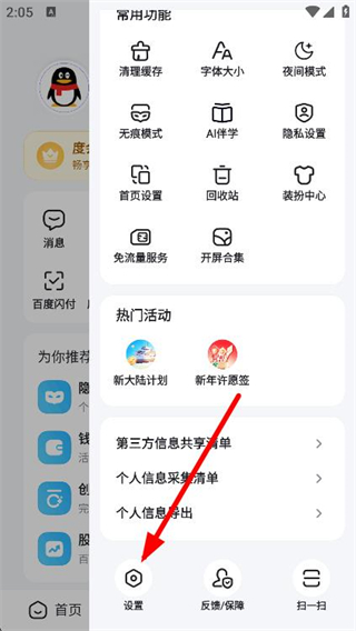 2、找到设置并点击,进入百度的设置界面。