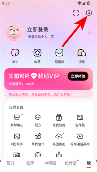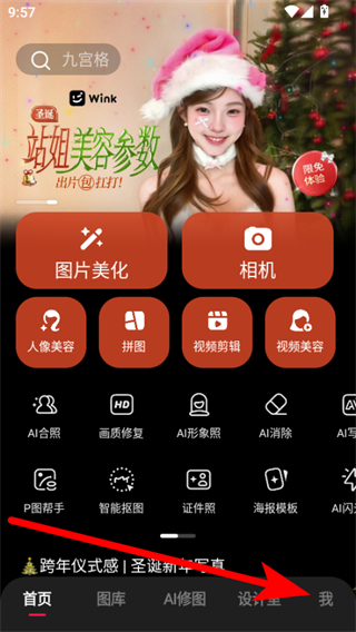 1、打开美图秀秀,点击底部导航栏的我选项,进入个人中心页面。
