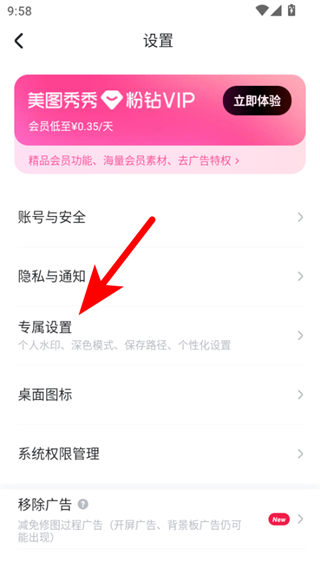 3、在设置界面中,找到并点击专属设置选项,进入专属设置页面。