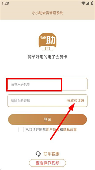 2、进入登录页面,填写手机号,并点击获取验证码。