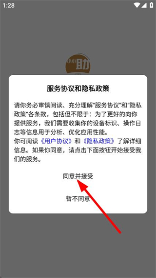 1、打开小小助会员,在弹窗中点击同意并接受选项。