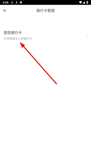 4、在银行卡管理页面,点击提现银行卡选项,按提示操作即可绑定本人的提现银行卡号。