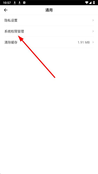 3、在通用页面里,点击系统权限管理选项,进入系统权限管理页面。