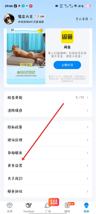 2、在个人中心页面找到更多设置选项并点击,进入更多设置的功能列表界面。