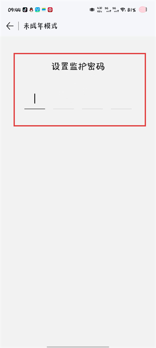 4、在未成年模式页面中,设置对应的监护密码,完成后即可开启该模式。