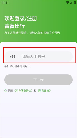 2、在登录界面的输入框中,填写个人常用的手机号码信息。