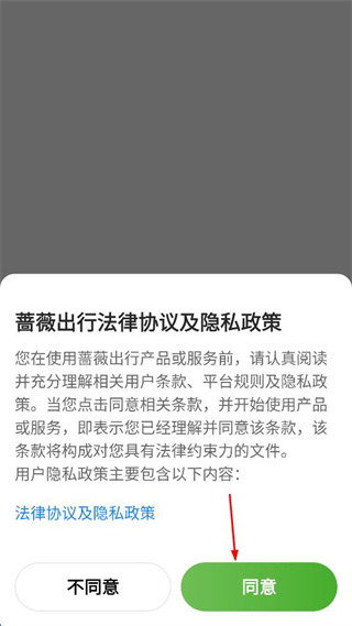 1、阅读法律协议及隐私政策内容,点击页面中的同意按钮进入登录界面。