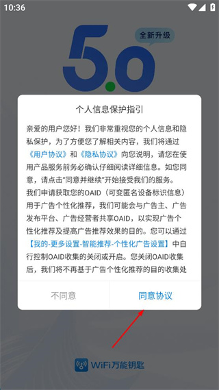 4、在个人信息保护指引弹窗中,点击同意协议按钮,继续使用软件的相关服务。