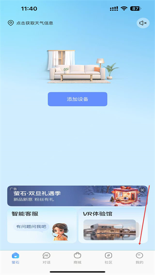 1、打开萤石云视频的APP,进入时点击右下我的图标。