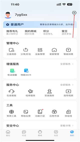 2、进入我的页面内,用户需点击右上角齿轮状的功能按钮。