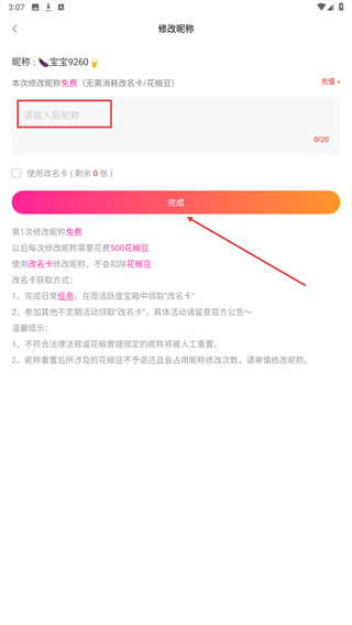 4、在输入框中填写想要更换的新昵称,点击完成按钮即可完成。