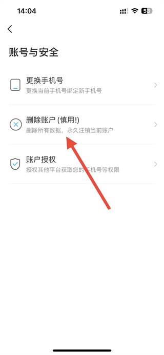 3、在账号与安全页面里,找到删除账户选项并点击,进入注销账户的条件确认界面。
