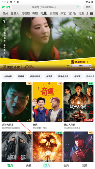 1、打开爱奇艺APP,进入时点击上方电影的标签。
