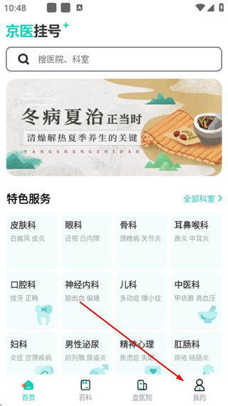 1、打开北京医院挂号通APP,在特色服务板块中,点击想要挂号的科室。