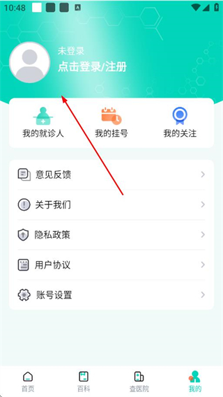 1、打开北京医院挂号通应用,在首页点击底部导航栏的我的选项。