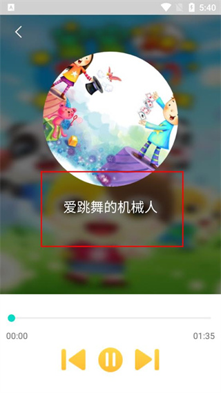 4、点击播放按钮后,进入对应儿歌的播放页面,可看到爱跳舞的机械人正在播放的界面。
