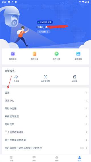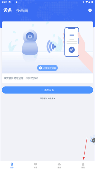 1、打开易视云APP,进入设备界面,点击底部我的选项,进入个人页面。