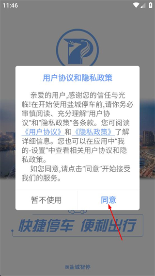 1、查看弹出的用户协议和隐私政策内容,点击界面中的同意按钮,进入登录页面。