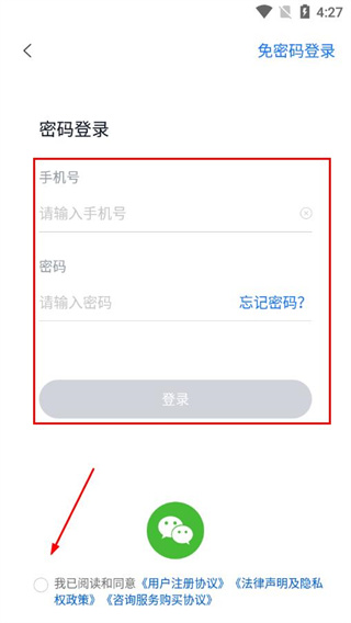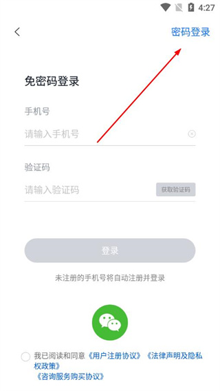 3、填写手机号并获取、输入验证码,勾选协议后,点击登录。