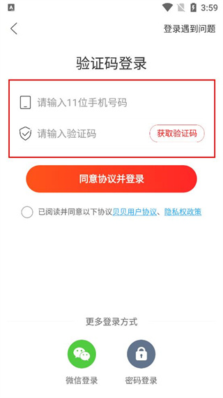 3、在登录页面的对应输入框,依次填写个人的手机号码、获取并填写对应的验证码。