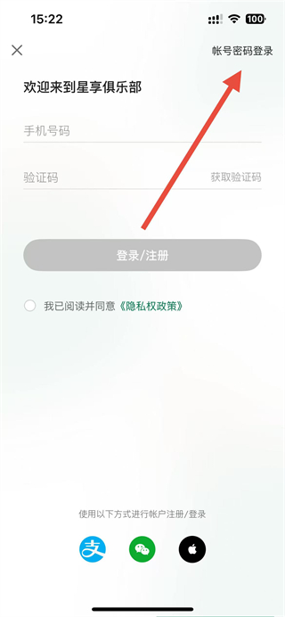 2、在登录界面,点击右上角的账号密码登录选项,切换至密码登录页面。