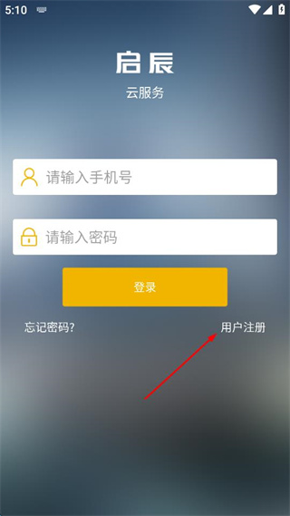 1、打开启辰云服务页面,找到用户注册选项,点击进入用户注册界面。