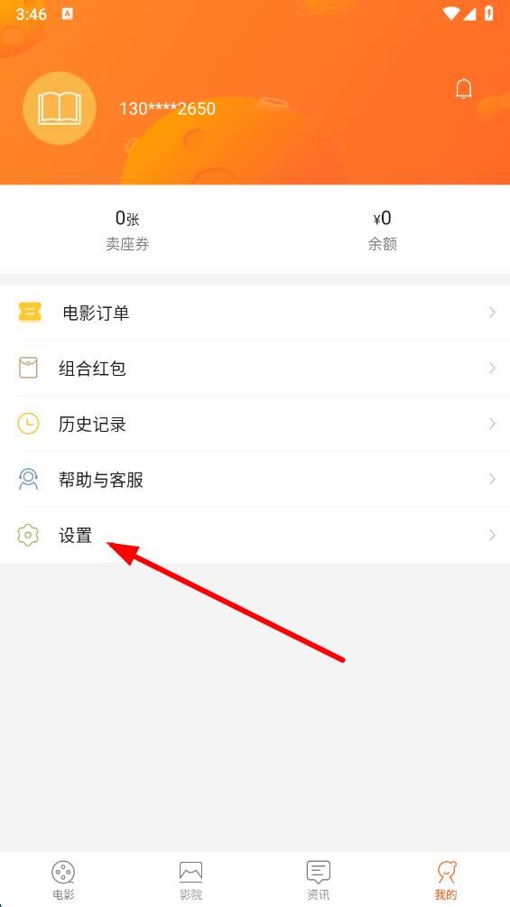 1、打开卖座电影app,点击底部导航栏中的我的。