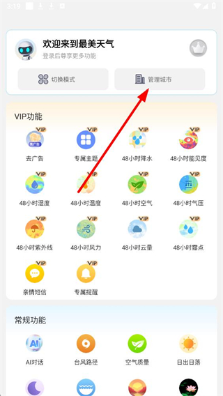 2、进入页面后,找到管理城市按钮并点击,进入城市管理的操作界面。