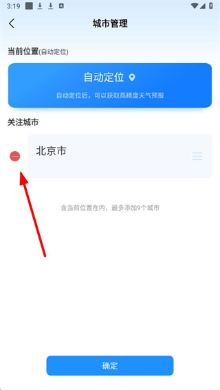 4、在编辑状态下,点击对应城市左侧的删除按钮,再点击确定,即可完成城市的编辑操作。