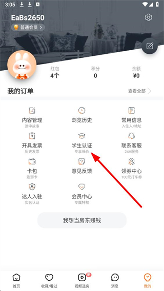 1、在途家app界面底部,找到我的选项并点击,进入个人中心页面。
