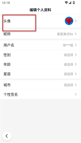 4、在编辑个人资料页面,点击头像选项准备进行头像更换的操作。