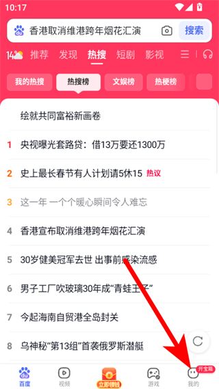 1、打开百度应用进入首页,点击底部导航栏最右侧的我的选项,进入个人中心页面。