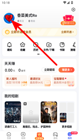 1、打开百度极速版,点击底部的我的选项进入个人中心页面。