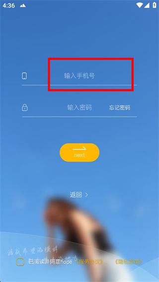 2、在密码登录页面,在输入框输入需要登录的手机号。